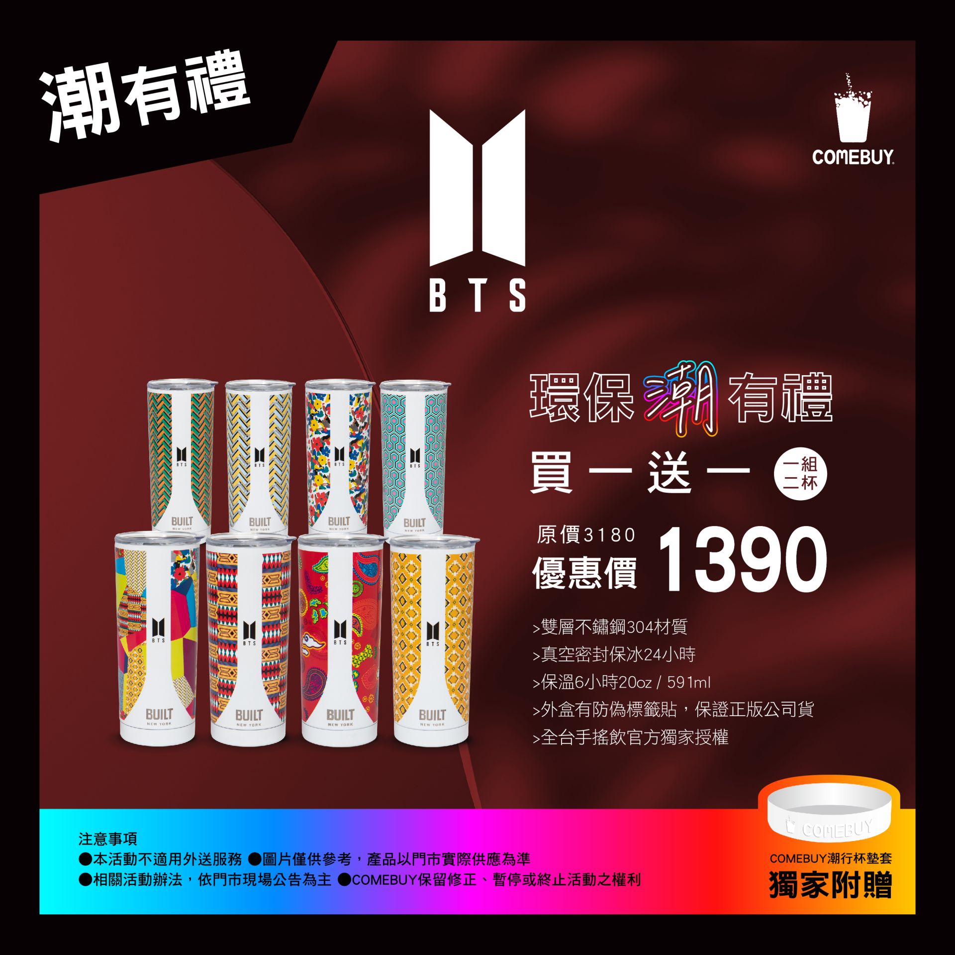 ➤獨家附贈 COMEBUY 潮行杯墊套