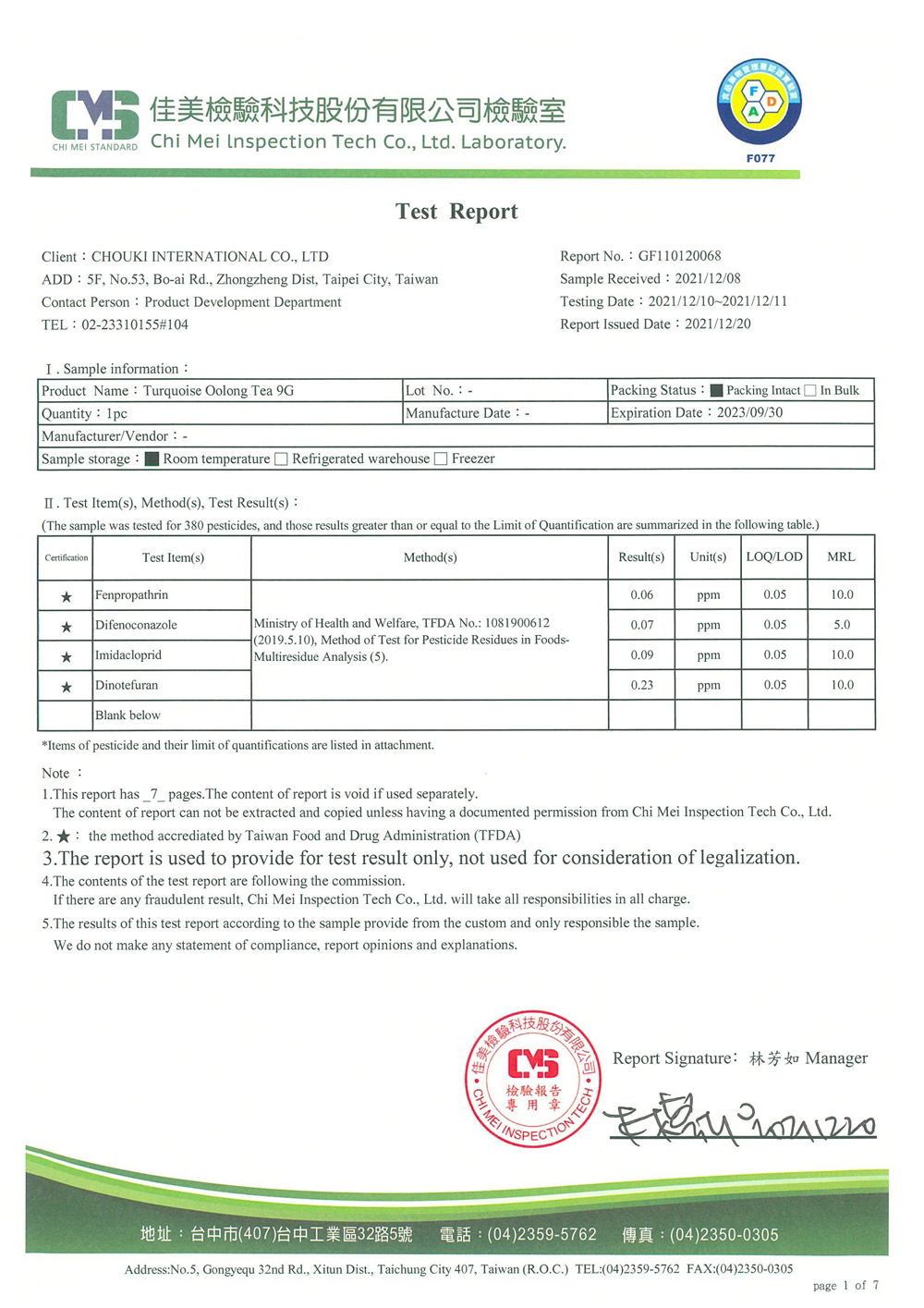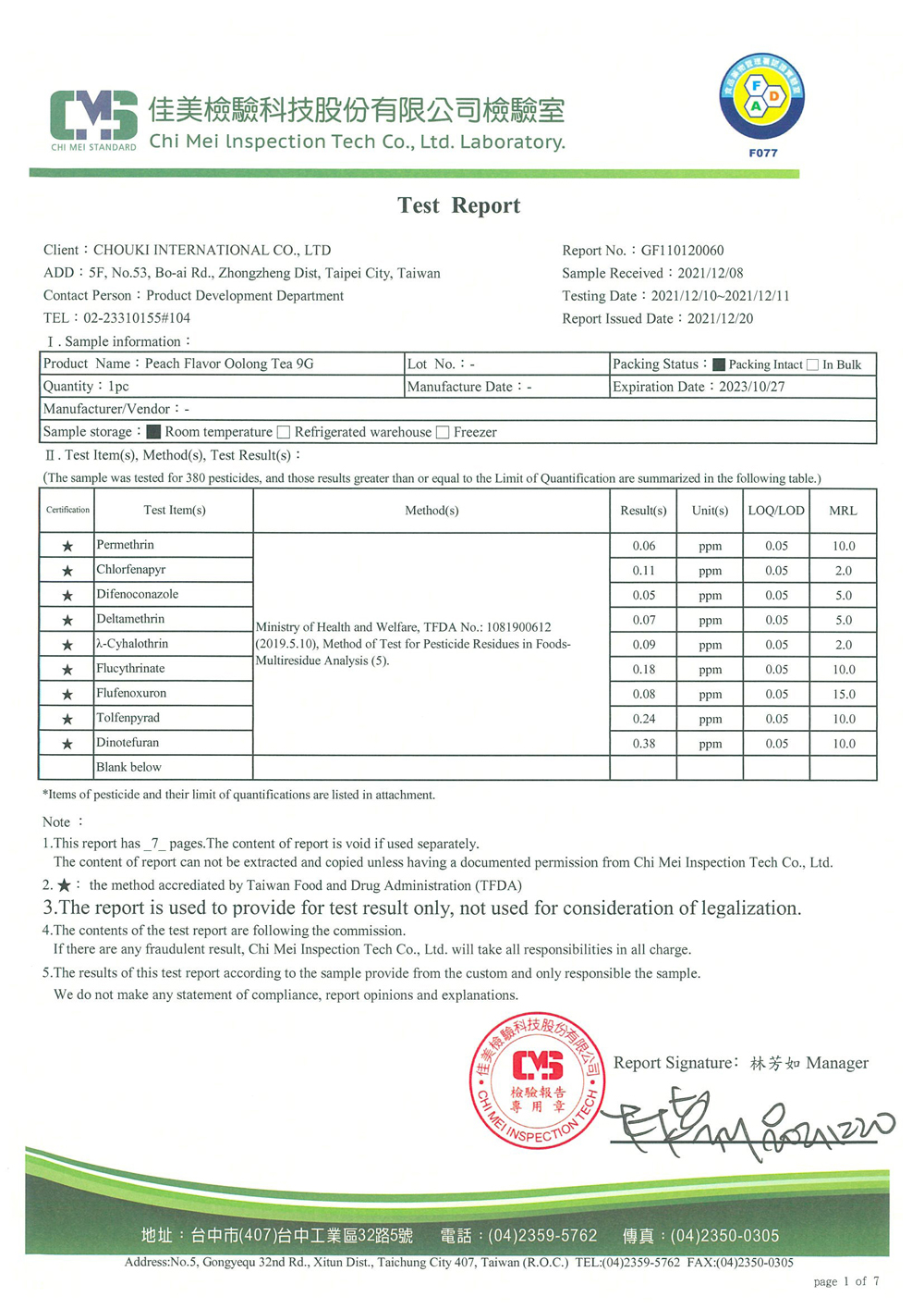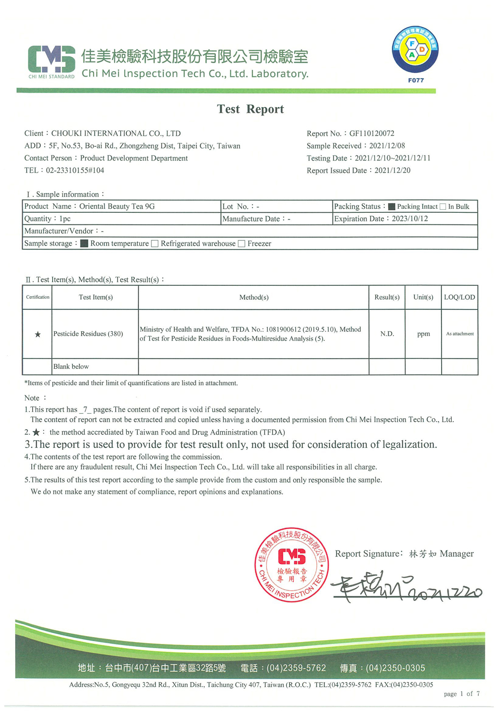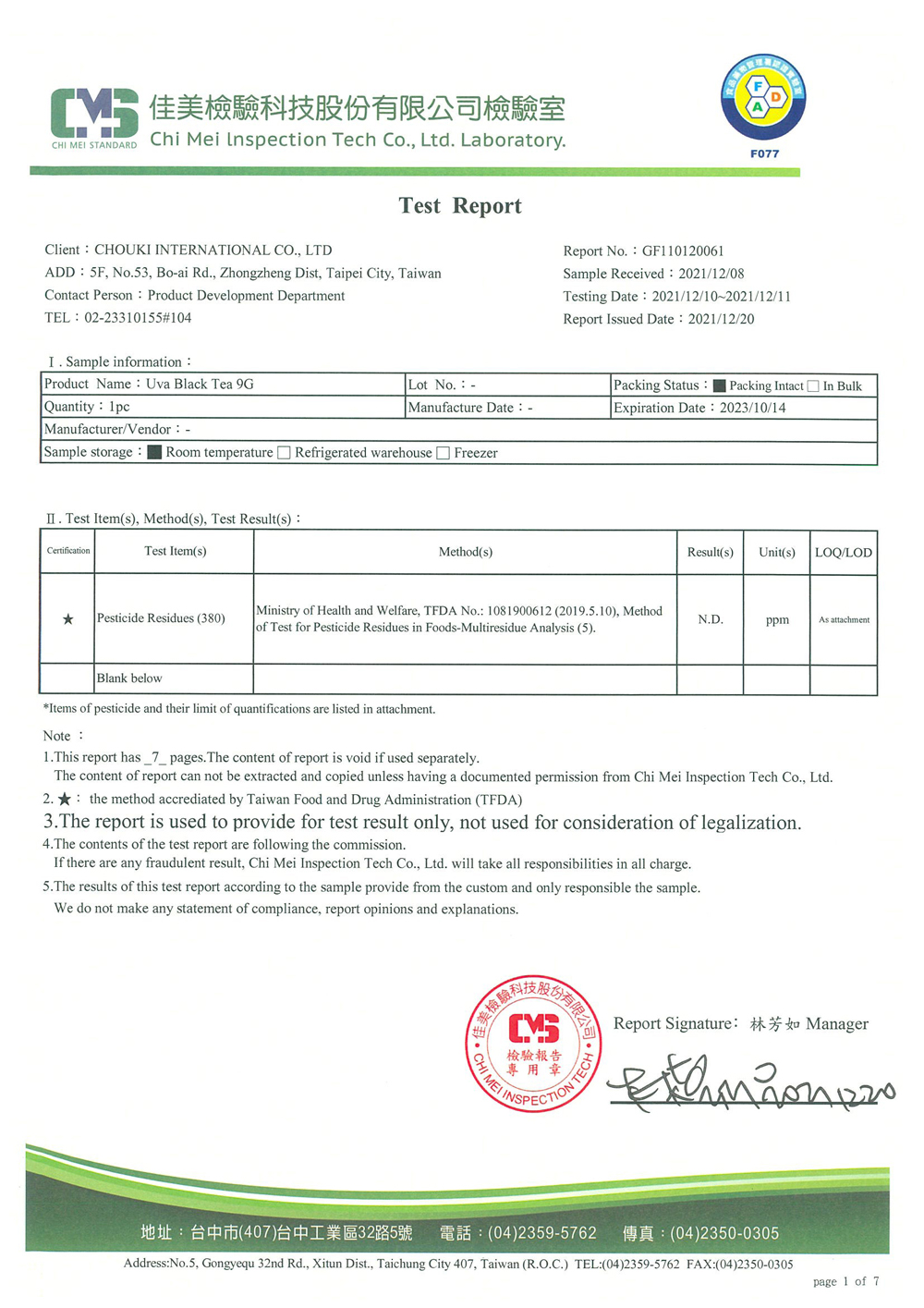 COMEBUY 10-12月茶葉檢測報告