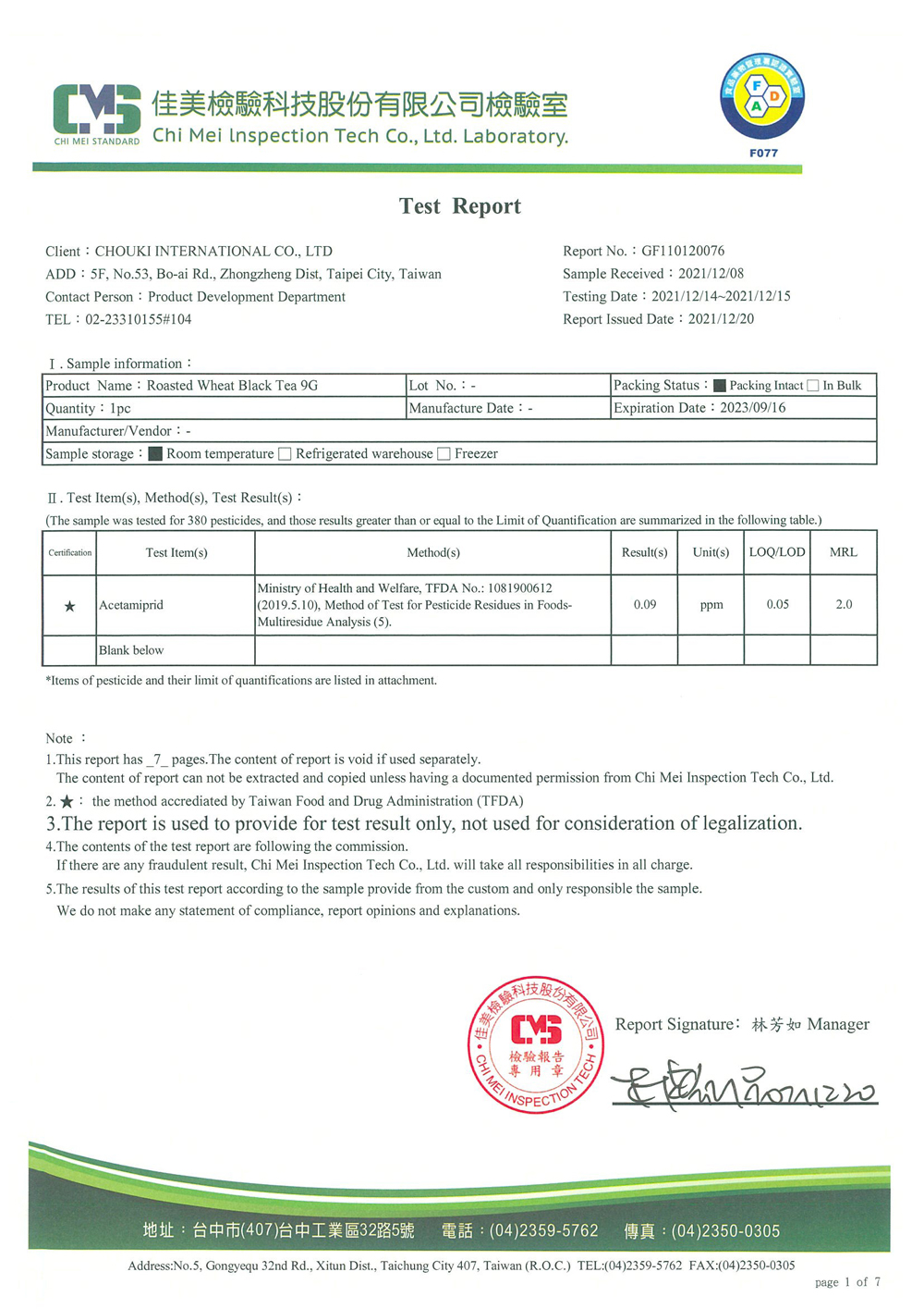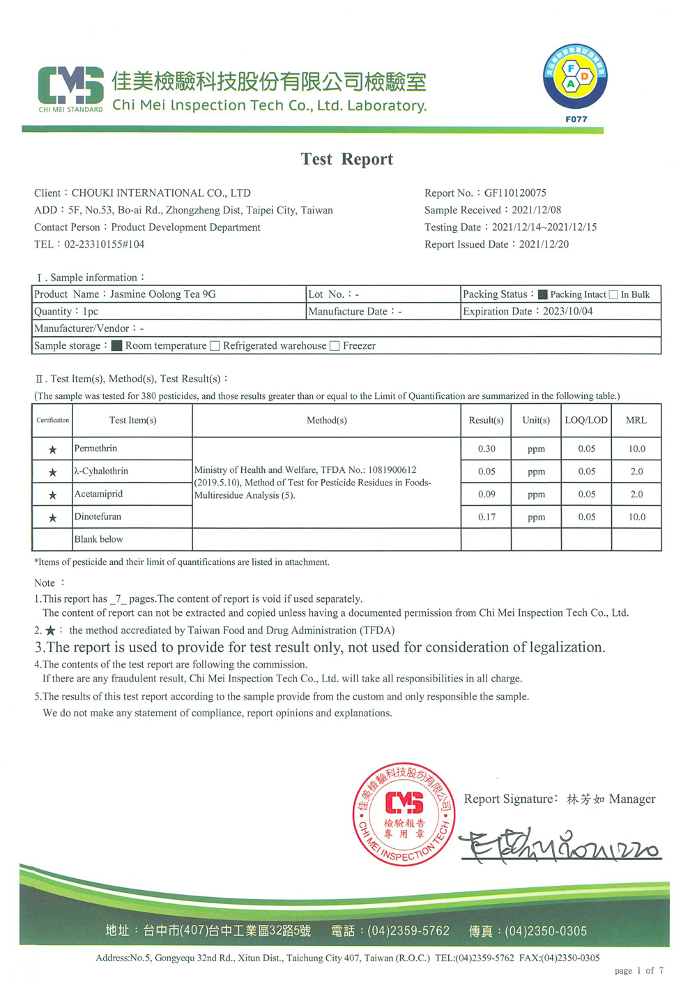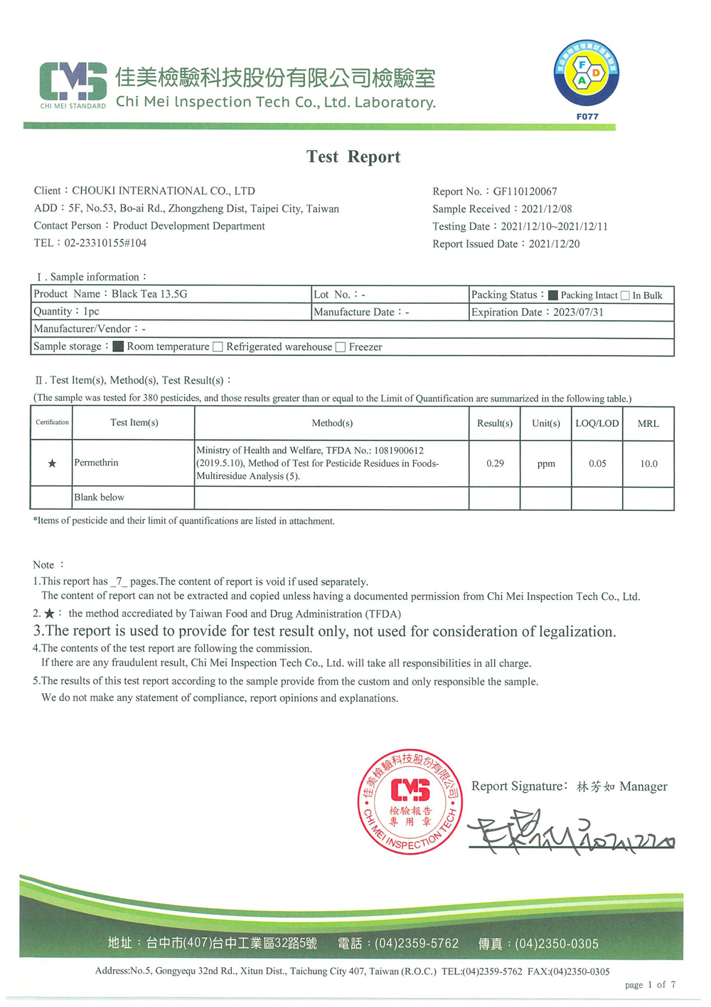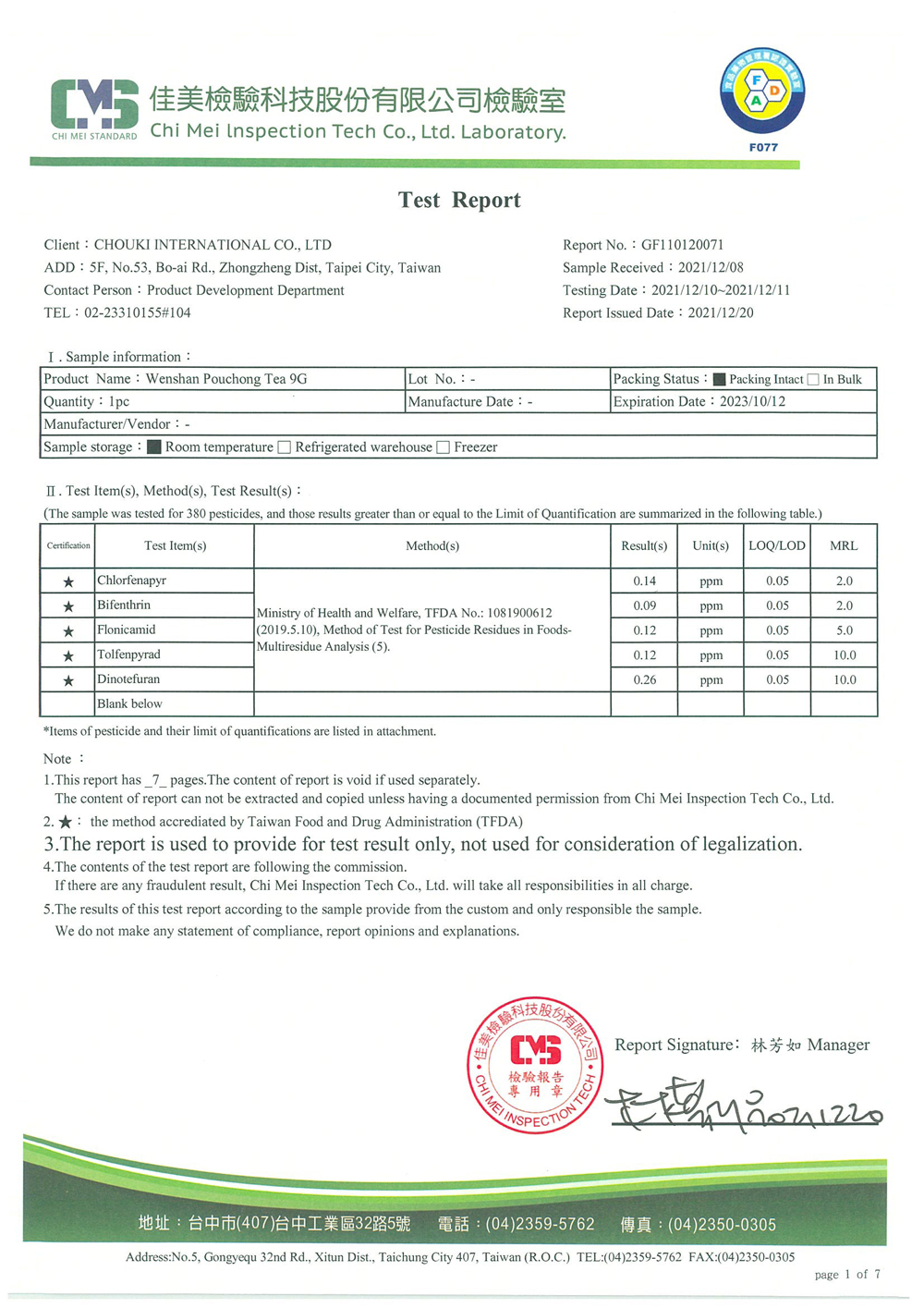 COMEBUY 10-12月茶葉檢測報告