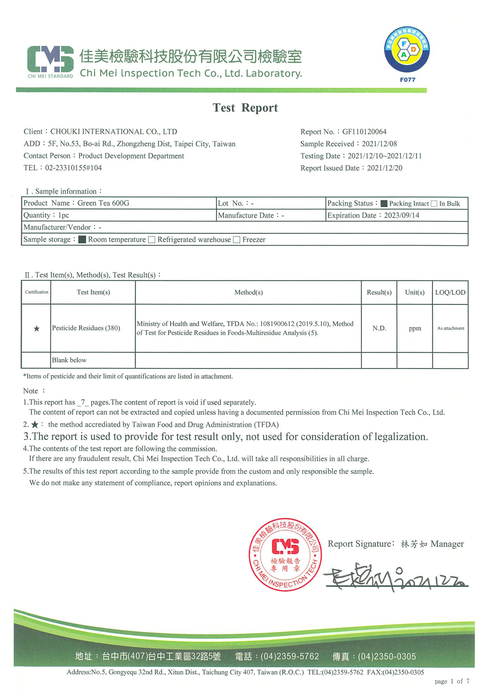 茶葉檢測報告