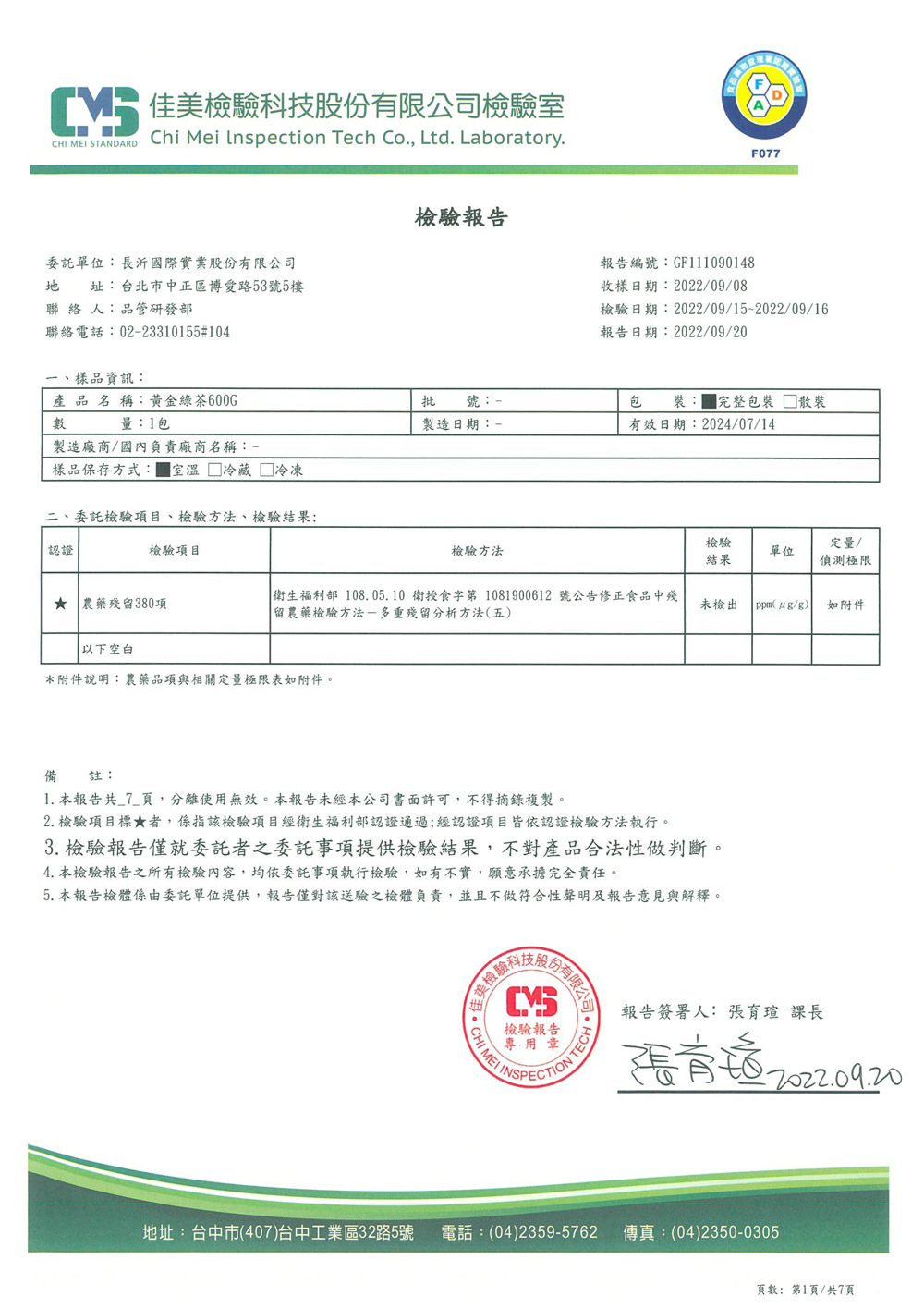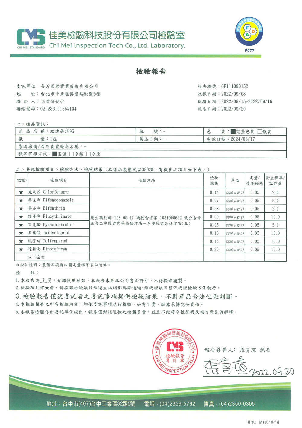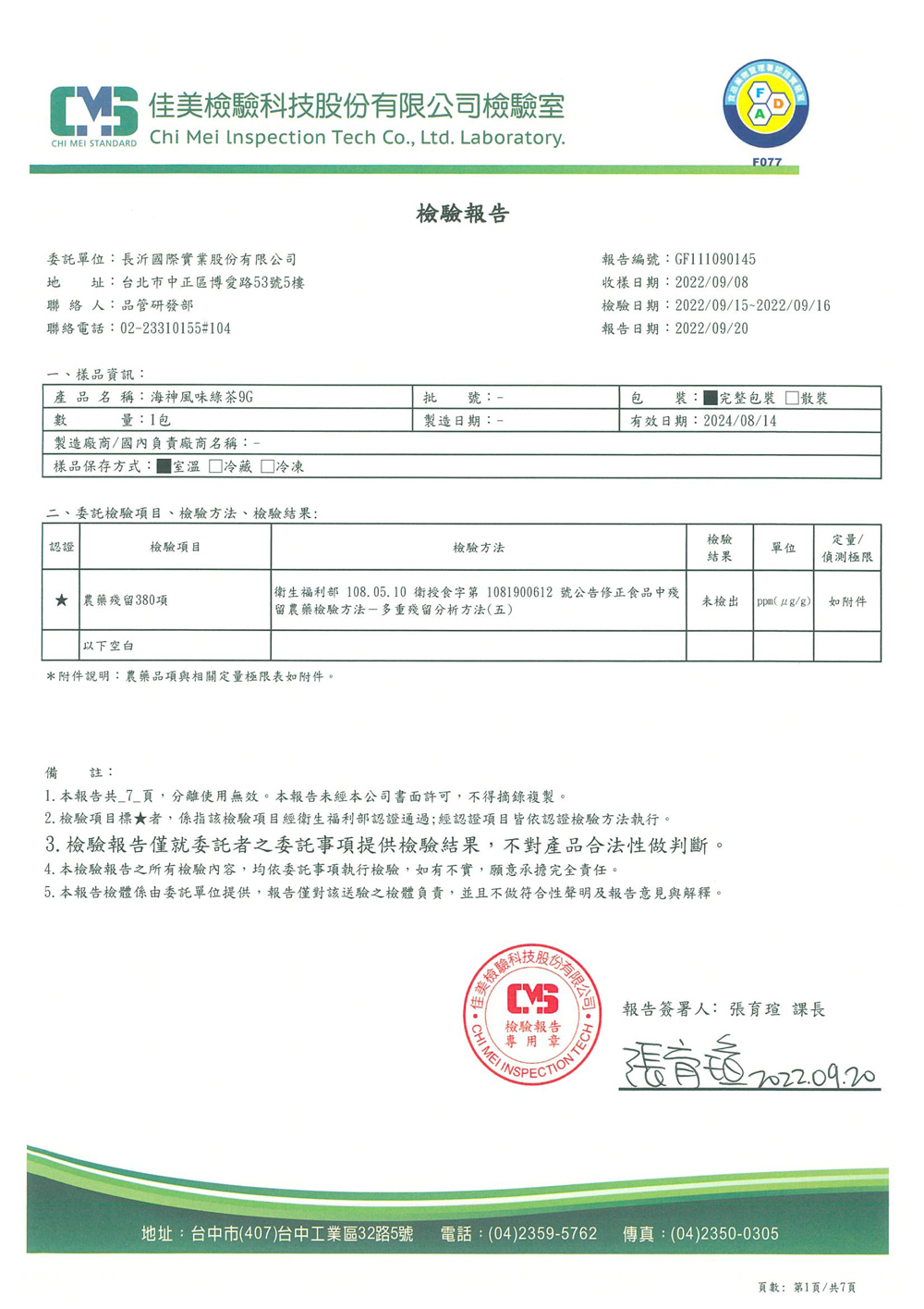 COMEBUY 7-9月茶葉檢測報告