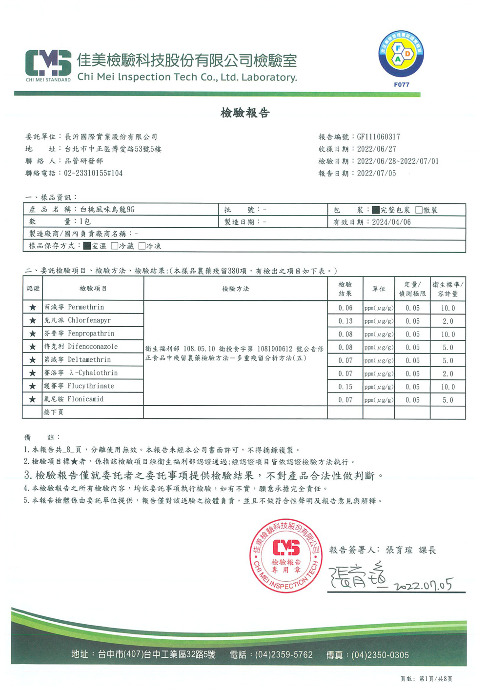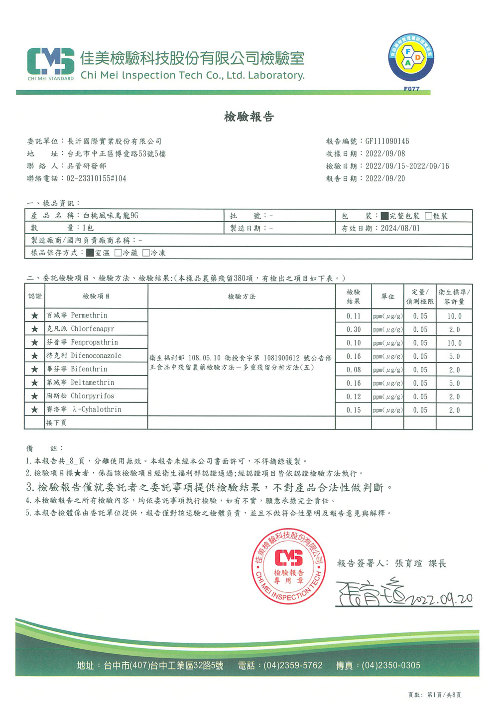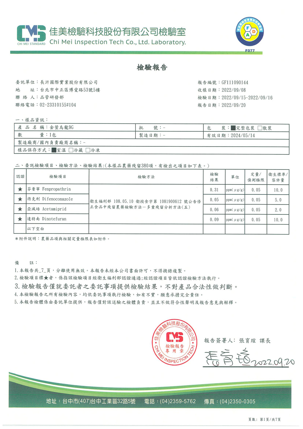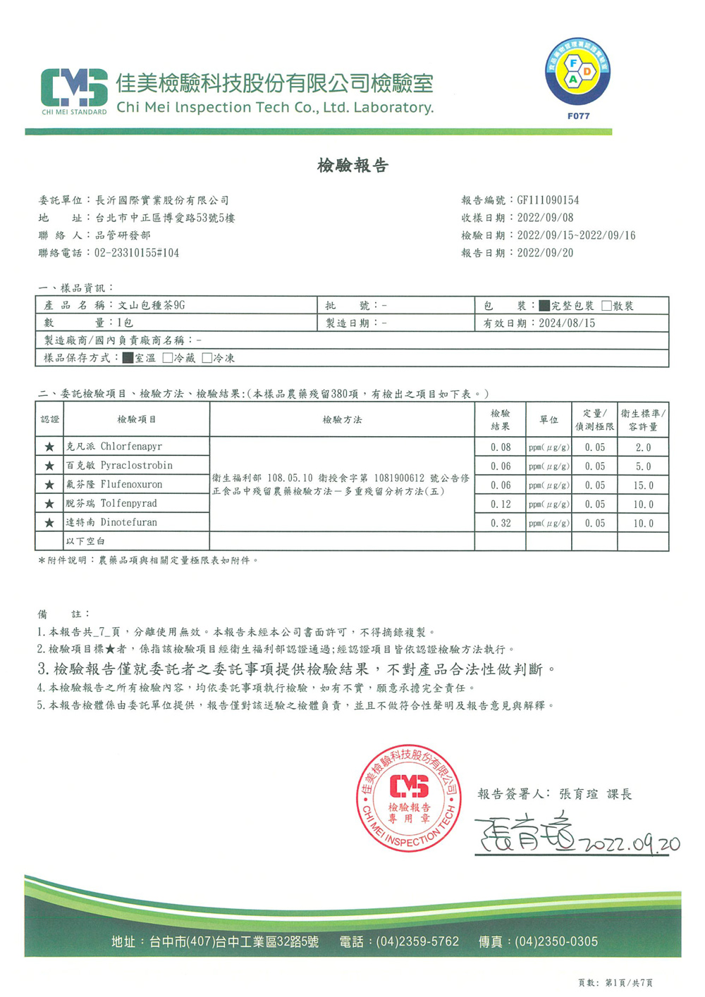 COMEBUY 7-9月茶葉檢測報告