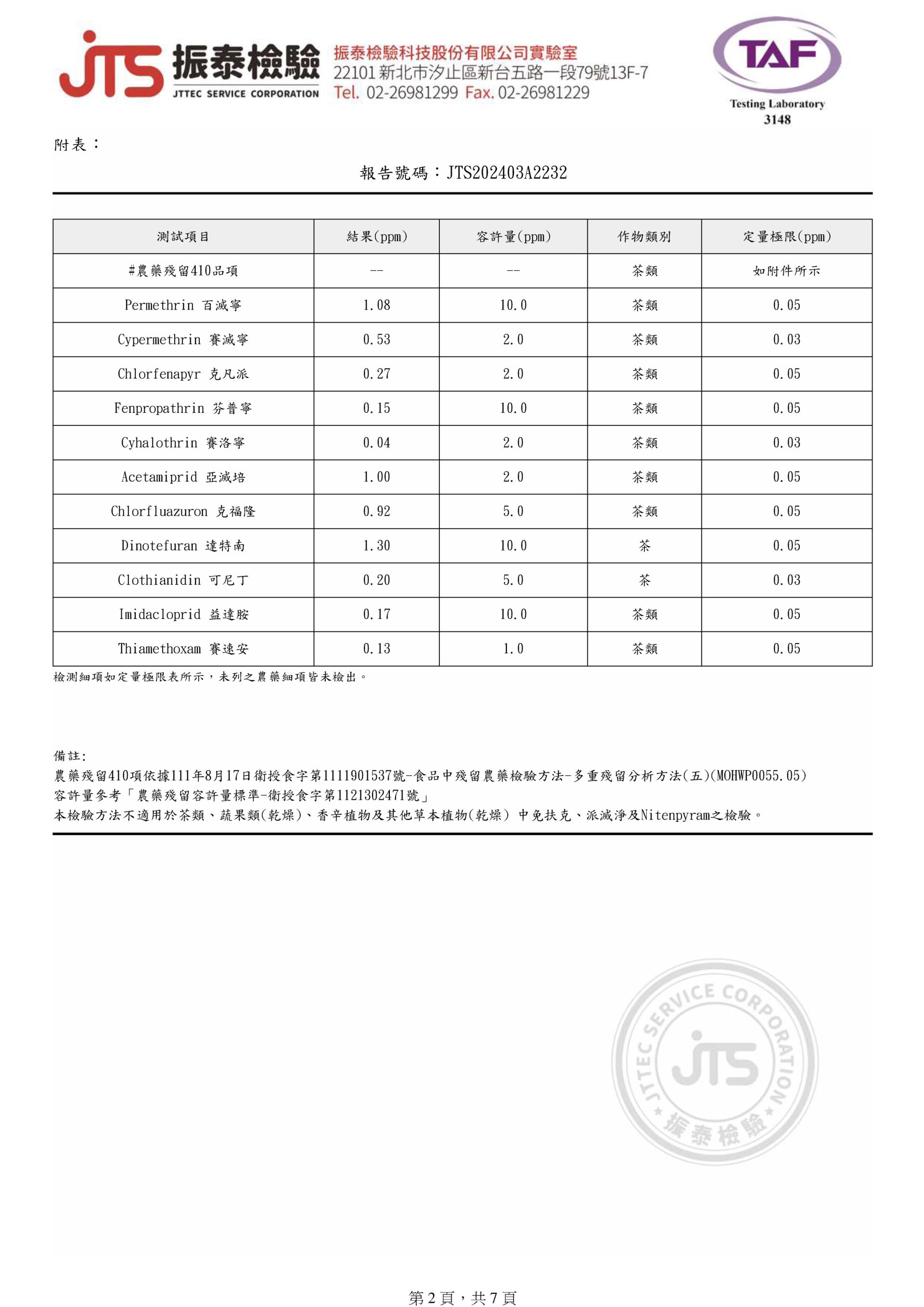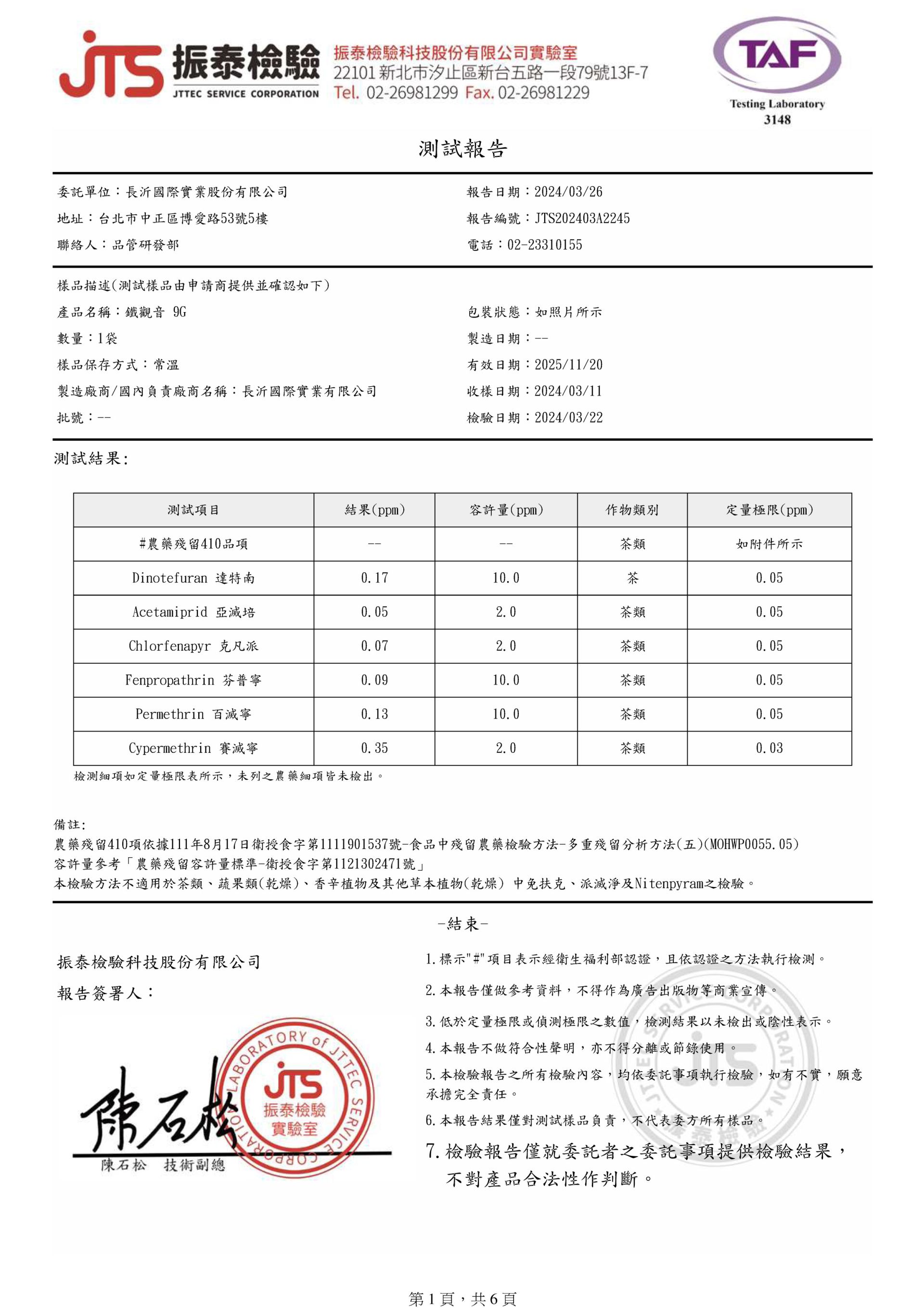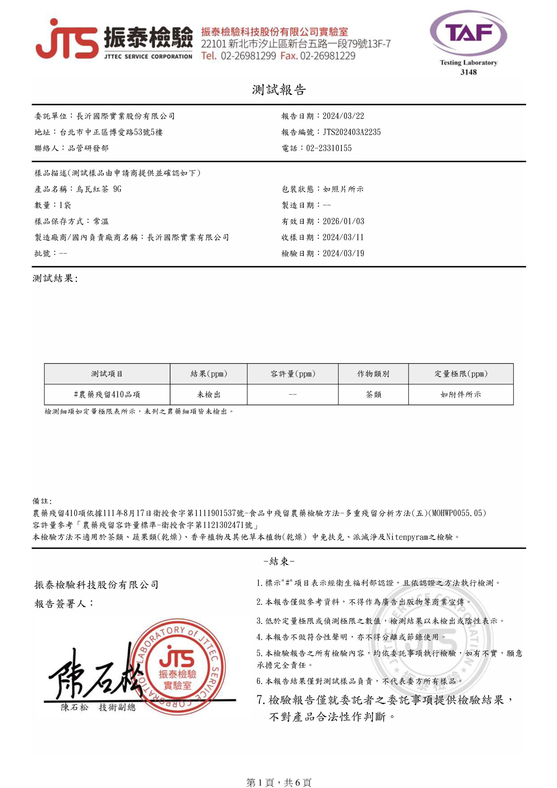 COMEBUY 1-3月茶葉檢測報告