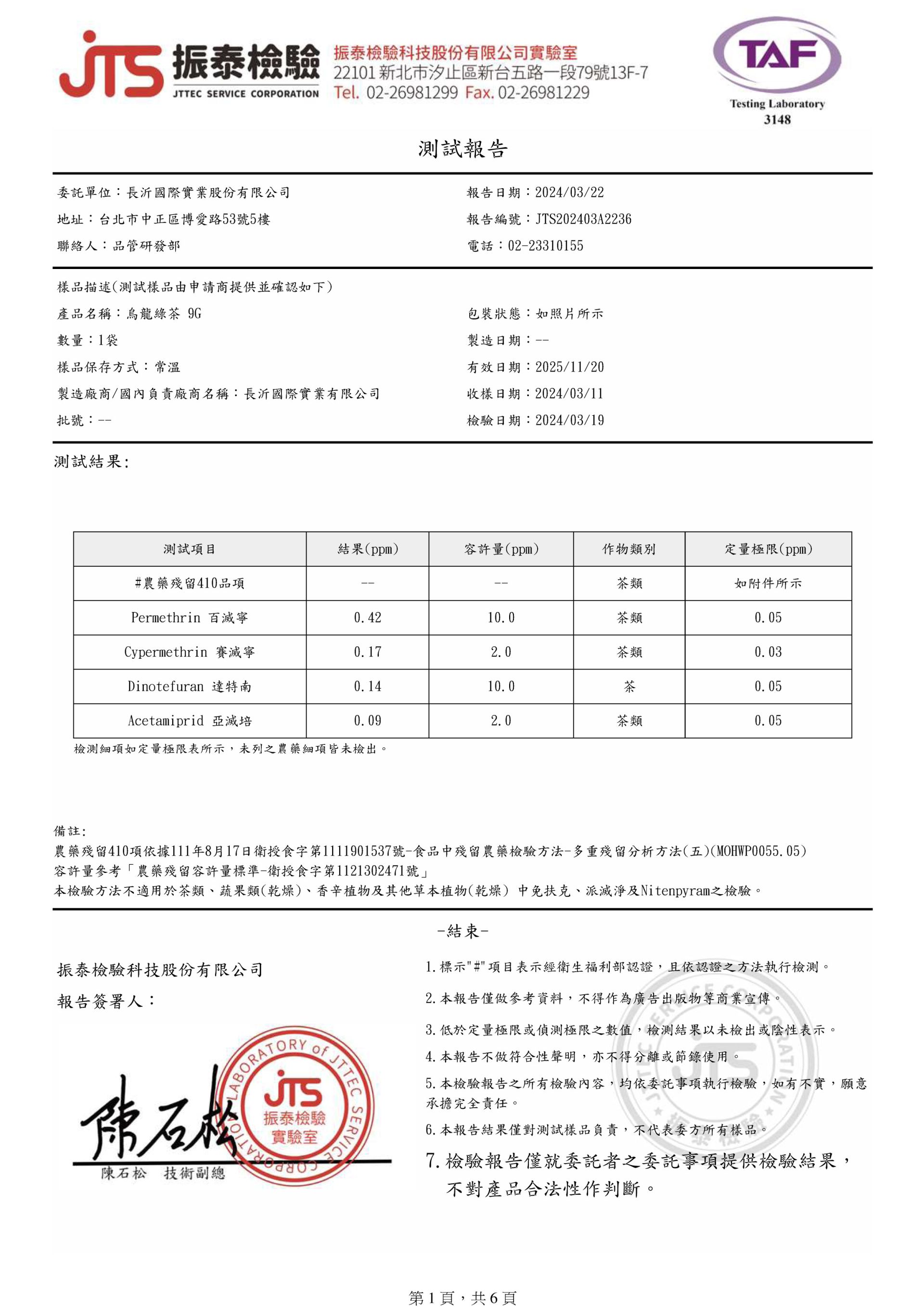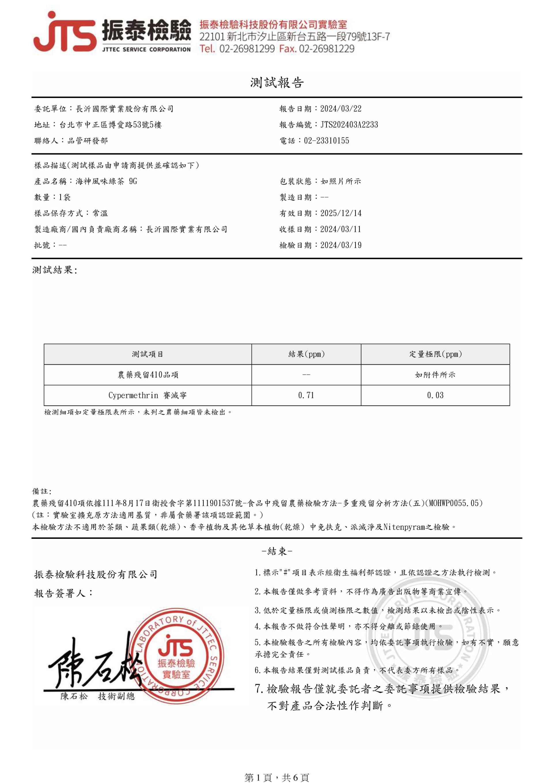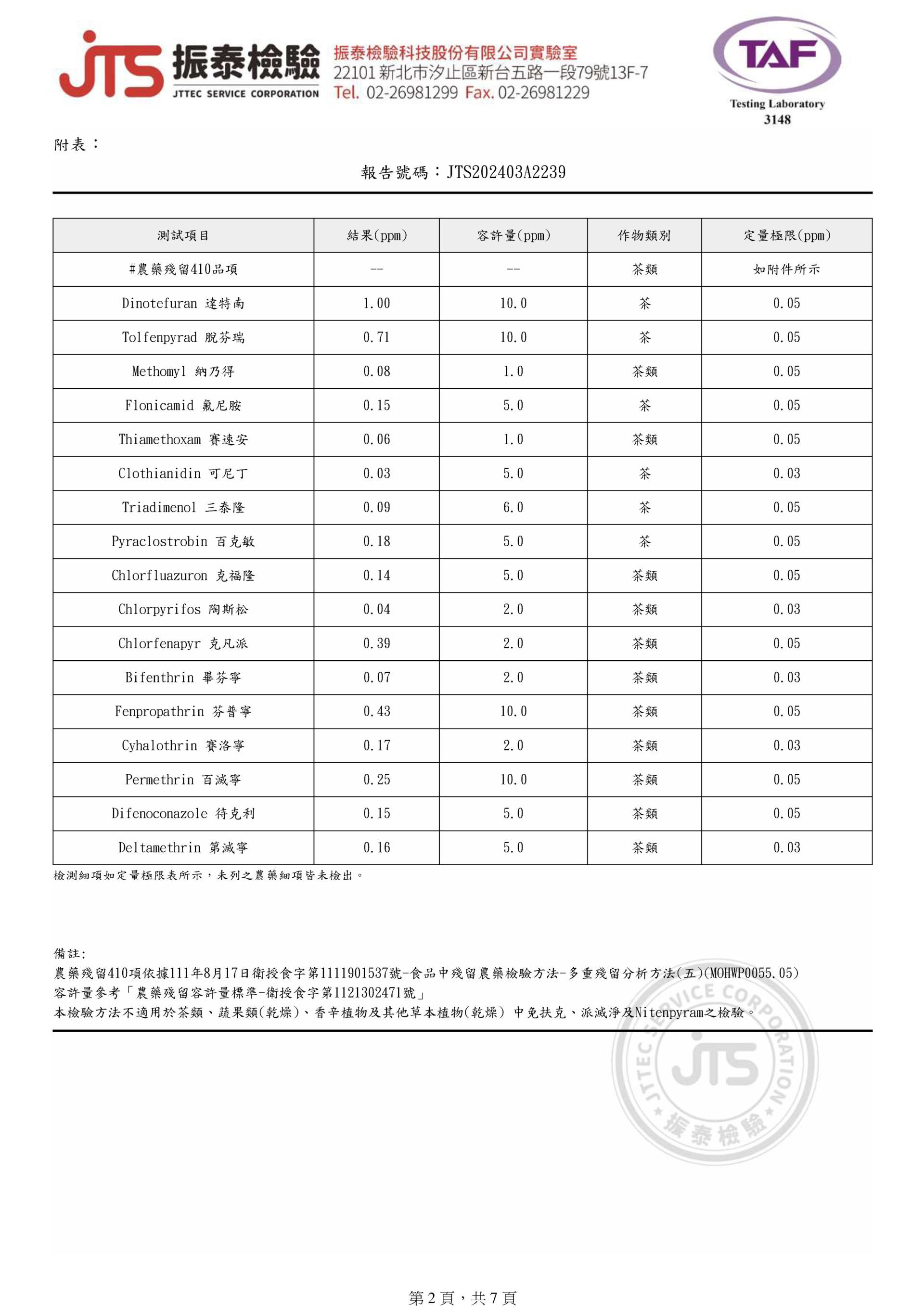 COMEBUY 1-3月茶葉檢測報告