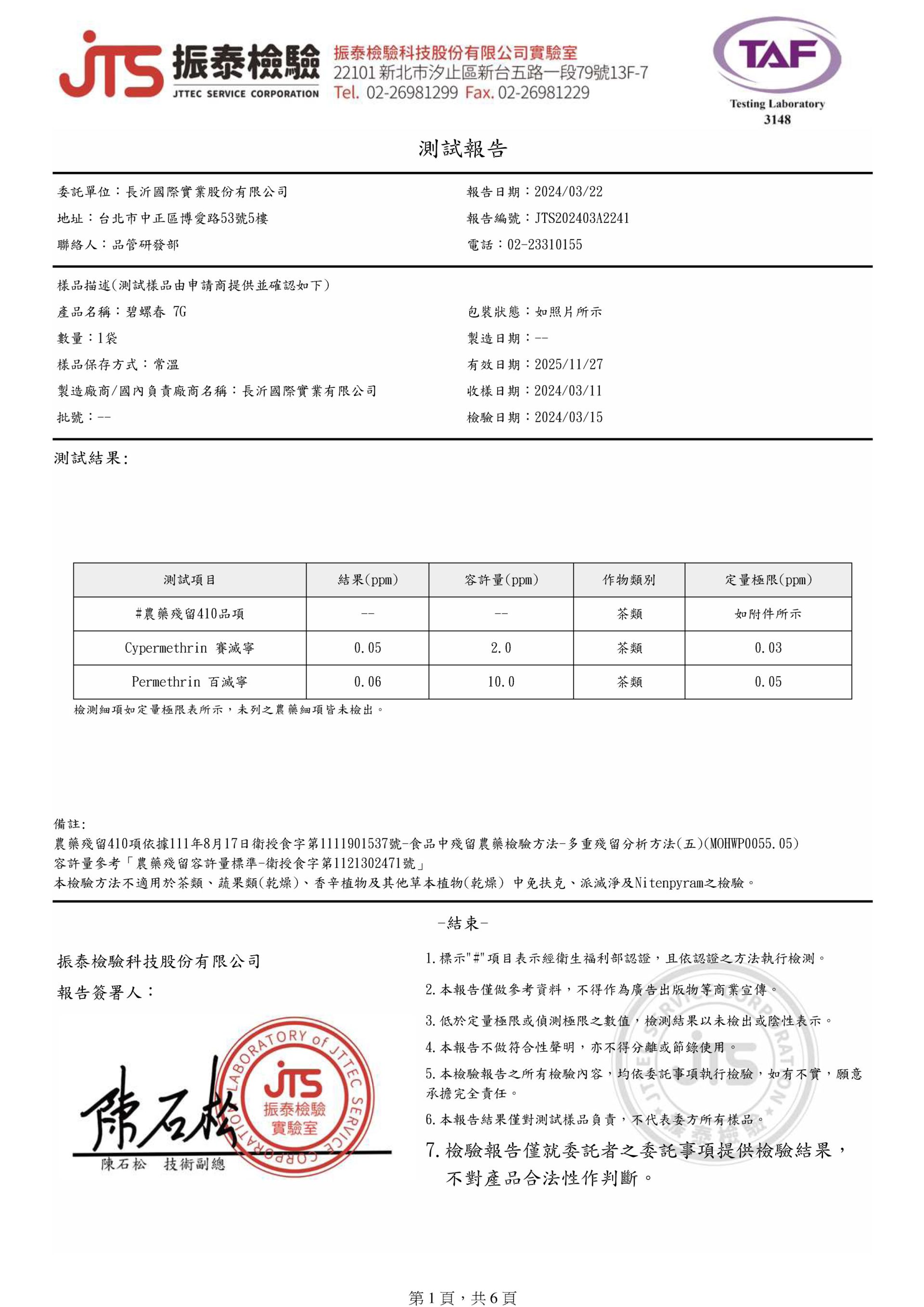 茶葉檢測報告